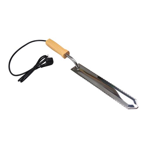LagerstatusArtikkelnummer602381ProdusentWillabEgenskaperElektrisk avdekkingskniv som letter avdekking av honningtavler. Det anstrengende arbeidet med å fjerne vokslokkene fra honningtavlene før slynging lettes betydelig med denne elektriske avdekkingskniven. Ledningens lengde er 1,5 meter. Etter at kontakten er koblet til 230 volts uttak og kniven har blitt varm, drar man den over rammen slik at vokslokkene fjernes. Varmen gjør at kniven enkelt skjærer gjennom voksen uten mye motstand. Voksrester som samles på kniven fjernes.
