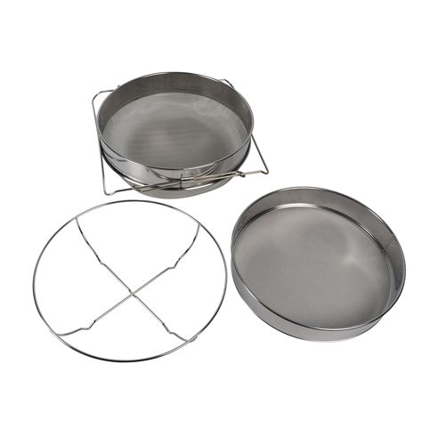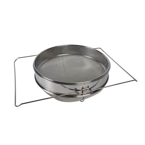 LagerstatusArtikkelnummer602459ProdusentWillabEgenskaperHonning sil i rustfritt stål med grov og fin sil med håndtak for plassering på kar og bordstativ. En stasjon inngår som holder silen oppreist hvis man setter den på et bord. Finsil med uttrekkbare håndtak. Grovsil i rustfritt stål med diameter på 320mm. Stativ for sil i rustfritt stål. De uttrekkbare håndtakene legges mot kanten av spann eller kar og holder silen på plass. Grovsilen kan tas ut. Enkel å rengjøre.