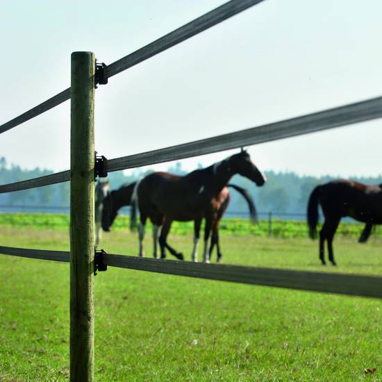 - Tilgjengelig i hvitt og terraTerra PowerLine bånd med en svart kant som gjør båndet sterkere. Ideelt for halvpermanente hestegjerder. 11 rustfrie stålkabler og 1 blandingsmetallkabel for god ledningsevne. UV-bestandig. Stolpeavstand opp til 4m. - I produktgrupper