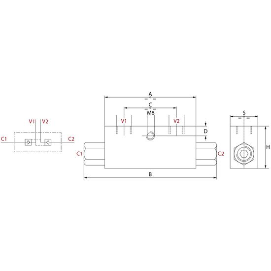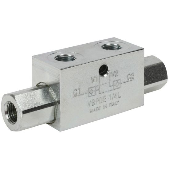 Maks. trykk: 350 barDobbelt låseventil der drivtrykket på den ene siden åpner den låsbare ventilen på den andre siden.