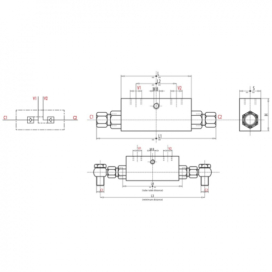 Maks. trykk: 350 barDobbelt låseventil hvor driftstrykket på den ene siden åpner den låsbare ventilen på den andre siden.
