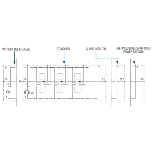 DobbeltvirkendeVentilblokk som fjærer tilbake til midtstilling. Ventilblokken leveres med spaker (med flere monteringsalternativer) og