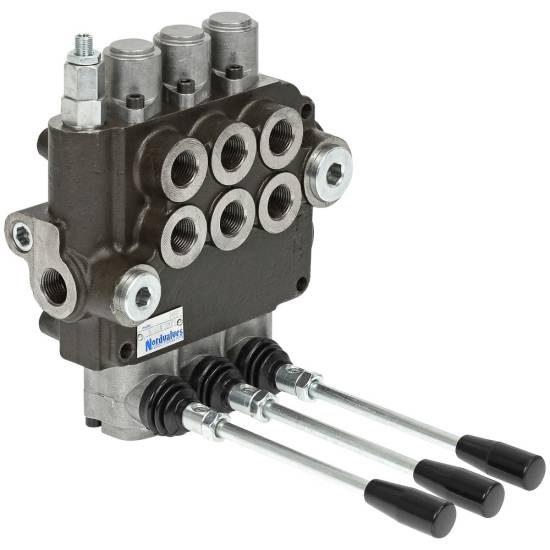 Ventilpakken er utstyrt med trykkbegrensning og tilbakeslagsventil. Ventilen kan seriekobles (N-port BSP 3/4").