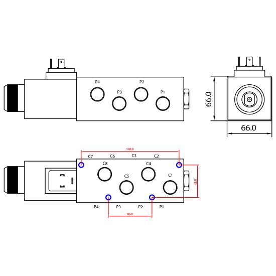 Retningsventil 12/2 1/2 12V 80L 300Bar