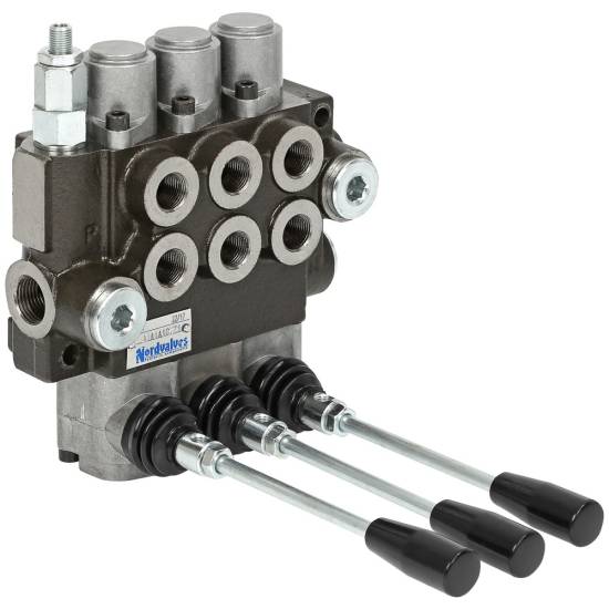 Ventilpakken er utstyrt med trykkbegrensere og tilbakeslagsventil. Ventilen kan seriekobles (N-port BSP 1/2").