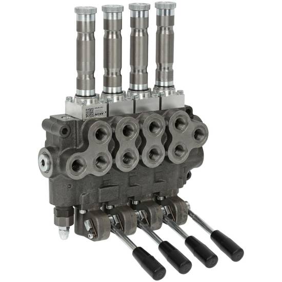 2x dobbeltvirkendeElektrisk styrt retningsventil med justerbar sikkerhetsventil. Ventilen leveres med spak.