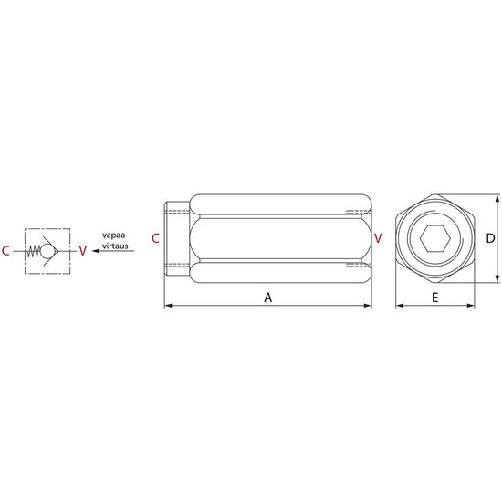 Maks. trykk: 350 barTilbakeslagsventil som hindrer strømning i en retning og slipper strømning fritt i den andre retningen.