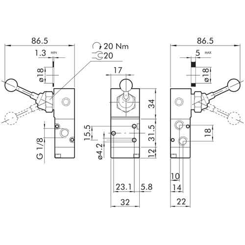 Mekanisk Ventil 3/2 1/8 90 Spak/Fjær Mav23Lesnc