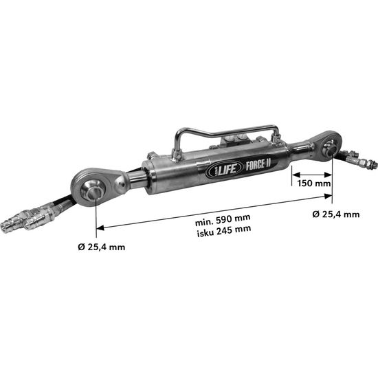 Slaglengde 245 mmHydraulisk toppstag av merket Long Life. Trykkstangen er i standardutførelse for cat 2 (25,4 mm).