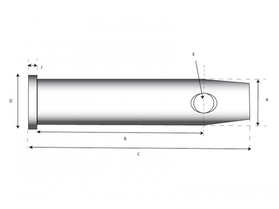 - (A) Bolt Ø:32 mm (1-1/4'') (B) Arbeidslengde:141 mm (5-9/16'') (C) Total lengde:165 mm (6-1/2'') (E) Hull Ø:12 mm (1/2'')