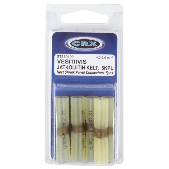 - tinnring, lodder sammen to kabler ved smelting - varmforseglingsringer på koblingsendene tetter og isolerer koblingen vanntett - krympskjøt - ledning mm²: 4 - 6 - farge: gul