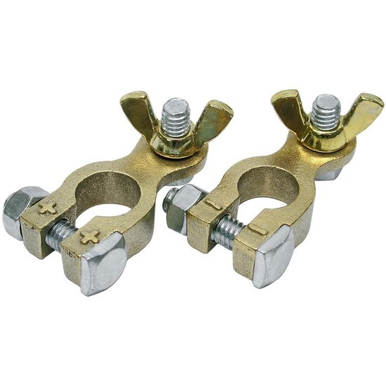 Batteriklemme, Messing - + og - 8 mm