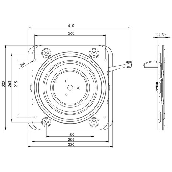 - 420mm inkludert justeringsarmPraktisk svingplate for å justere setets posisjon. Gjør det enkelt å bytte posisjon i hytta med et enkelt håndgrep.