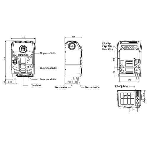 - nominell luftstrøm 150 m³/h