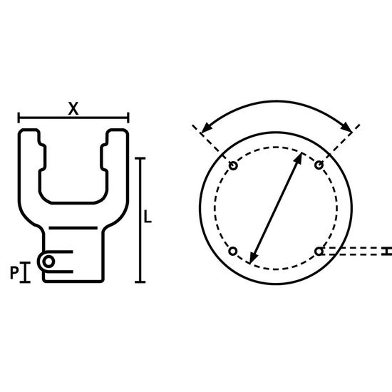 Gaffel B06 flens 4 hull 10,5mm c-c 94mm