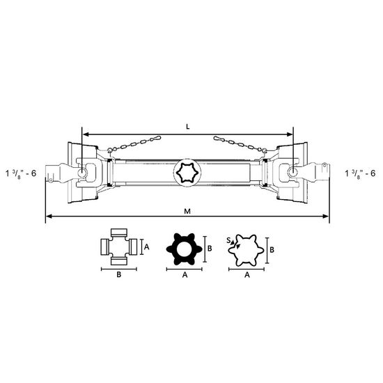 - gaffel traktorside: 1.3/4"-6Z låskrage