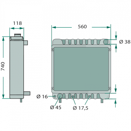 Totalbredde: 560mmKjøler som passer til diverse Ford traktorer (Se "Passer til").