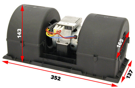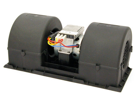 Med 4 kabeltilkoblinger. Viftemotor med tre hastigheter som styres med en vanlig bryter (om eksisterende hytteventilator har 2 kabler, koble svart til jord og den andre kabelen til en av de andre. La de to øvrige være ukoblede). Kabler svart jord, gul lav hastighet, oransje middels hastighet, rød høyeste hastighet.