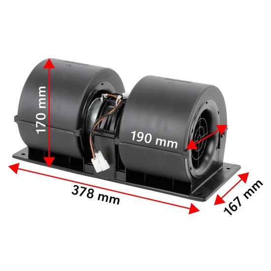 12 VKomplett varmeviftemotor / hyttevifte med motstand. Viften passer bl.a. diverse Case IH og Claas modeller.