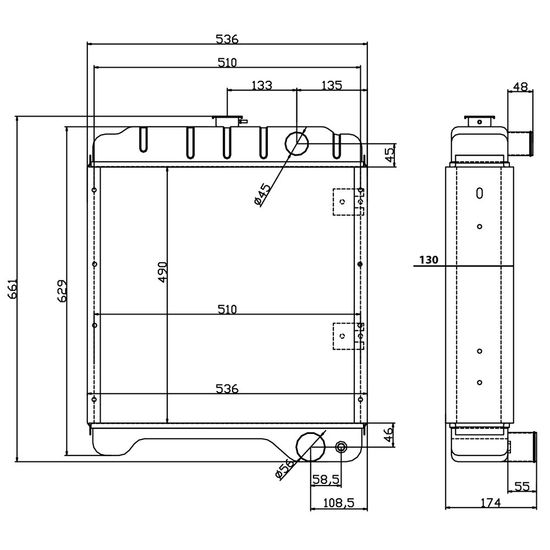 - kjølerens høyde 629 mm