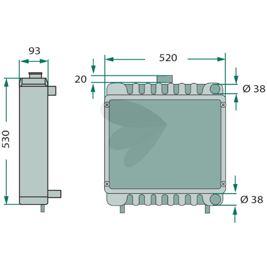 Total høyde: 530mmRadiator som passer til ulike John Deere modeller ("Se passer til").