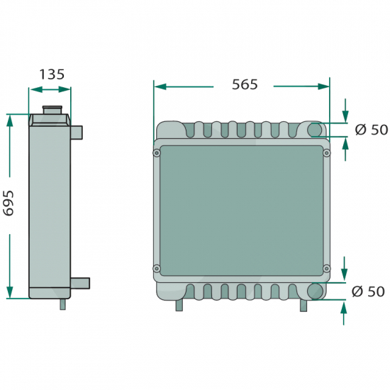 Total bredde: 565mmRadiator som passer diverse Massey Ferguson-modeller ("Se passer til").
