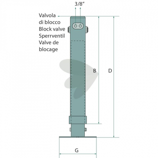 Støtteben hydraulisk for tilhenger 2800kg, Justering 500mm