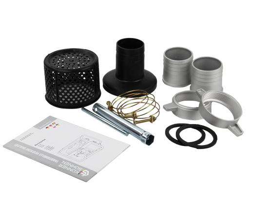 Vannpumpene leveres med følgende tilbehør: vannfilter, monteringssett, tennpluggverktøy og slangekoblingssett.
