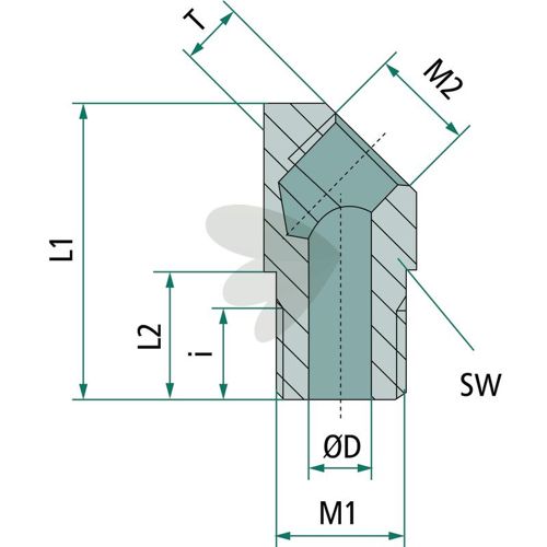 Hjørneskrukobling 45° 23X10
