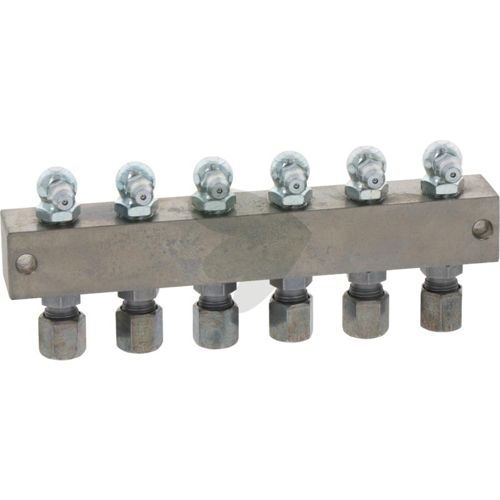 L3 (mm): 22Nippelblokk med 6-sifret 90° tilkobling, 140X130X22 mm. Perfekt for effektiv smøring i systemer med mange punkter.