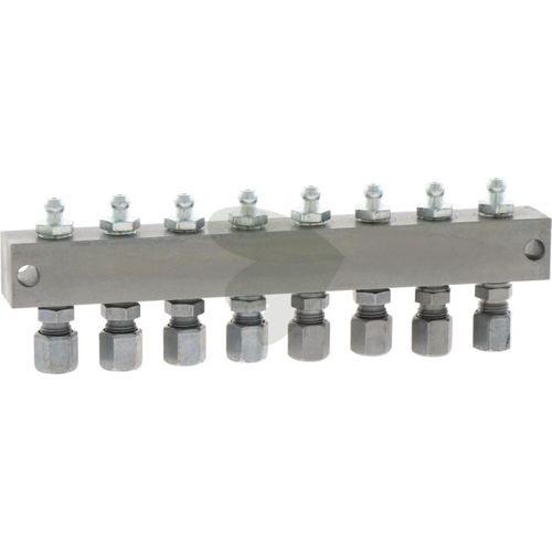 L3 (mm): 16Nippelblokk med 8-sifret 180° tilkobling, 144X132X16 mm. For jevn smørjedistribusjon til flere punkter samtidig.