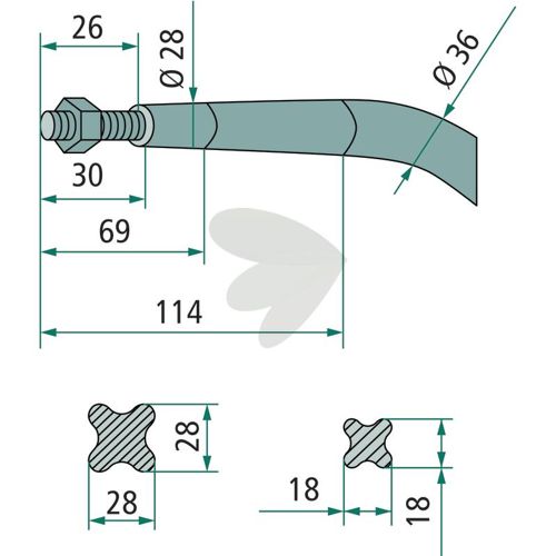 Ballespydd med flat mutter Strautmann M20 x 1.5 - 18809