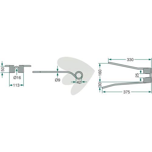 Lengde: 375 mmPinne til roterende rake 20-Pakke, venstre bøyd krem som passer til Fransgard, Pöttinger, PZ (Kverneland), Kuhn med flere.