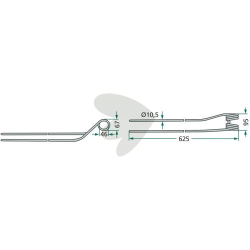 Rakepinne venstre, innvendig Krone 625 mm