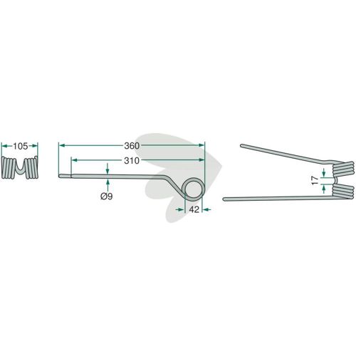 Rakepinne venstre Kuhn,PZ (Kverneland) 360 mm