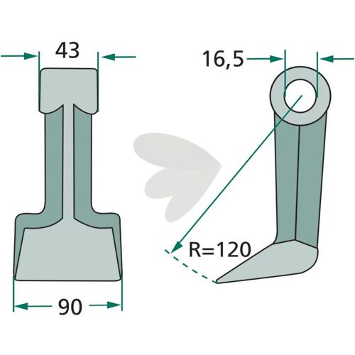 Hammarslag 43/90mm, hull 16,5mm