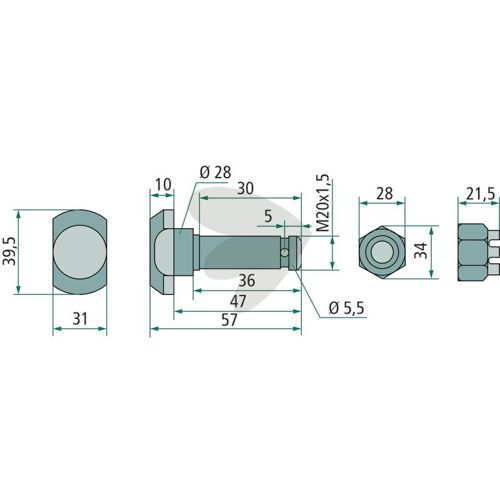 Knivskrue M20x35 mm, 12.9