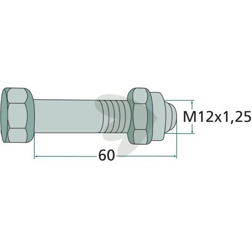 Skrue med mutter M12x1,25x60 mm