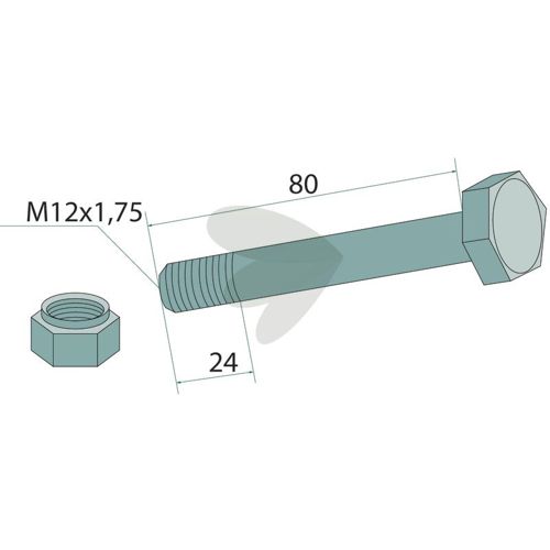 Skrue med mutter M12x1,75x80 mm, 10.9