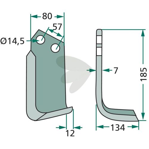 Jordfreskniv Perugini m.fl. c-c 57mm hull 14,5mm