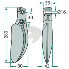 Tann med hull for montering i gruppen Slitedeler / Jordbearbeiding / Jordfres hos Sagroparts (180RH106_D)