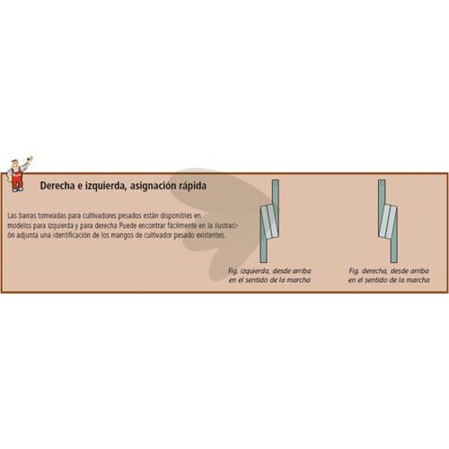 Pinn tung kultivator høyre, vridd 640mm hull 13mm
