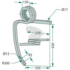 Pinn tung kultivator venstre Kverneland hull 13mm