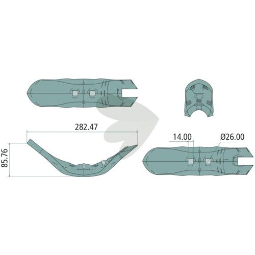 Mål (mm): Lengde = 282