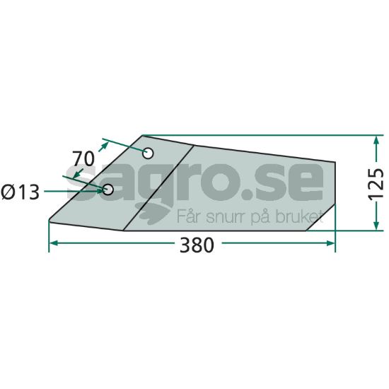 Vingdel høyre inkl. bolter 380X125mm hull c-c 70mm