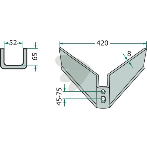 Vingeskjær Arbeidsbredde = 420 Arbeidsvinkel = 25°