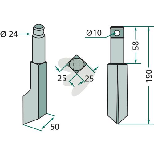 Rotorharvetann Rau m.fl. 25X190mm hull 10mm