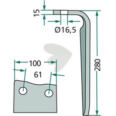 Rotorharvtann Krone m.fl. 100X280mm hull 16,5mm