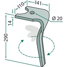 Rotorslåttand Kuhn m.fl. 110X290 mm hull 20 mm