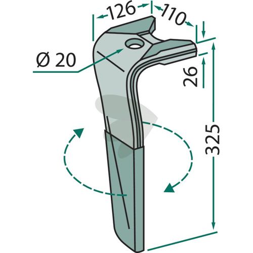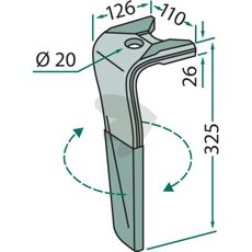 Rotorslåttand Kuhn m.fl. 110X325mm hull 20mm